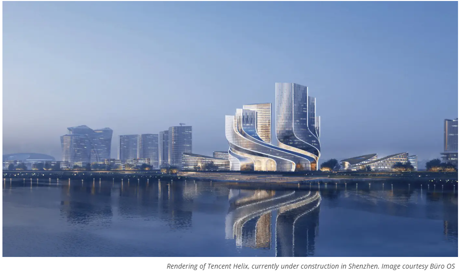 A few kilometres away, the Tencent Helix pushes that idea to another scale: half a million square metres of workspace spiraling around a vast elevated garden. Designed as the new global headquarters for China’s largest tech company, it is also meant to be a showcase of “sponge city” design that helps cope with increasingly extreme weather and rainfall that grows heavier and more unpredictable each year.