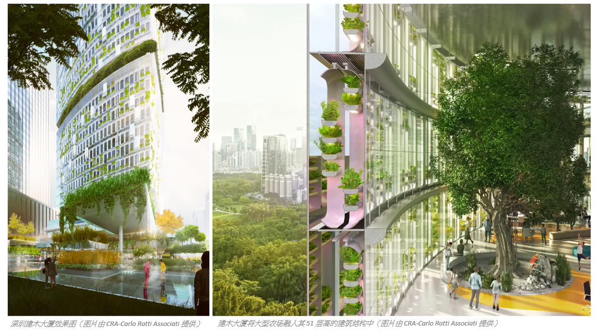 另一个实验性计划是2021年发表的建木大厦。 这栋位于深圳、高达218米的摩天大楼,外墙设有一万平方米的水耕农场,由人工智能虚拟农艺师管理,预计每年可生产27万公斤新鲜农作物。