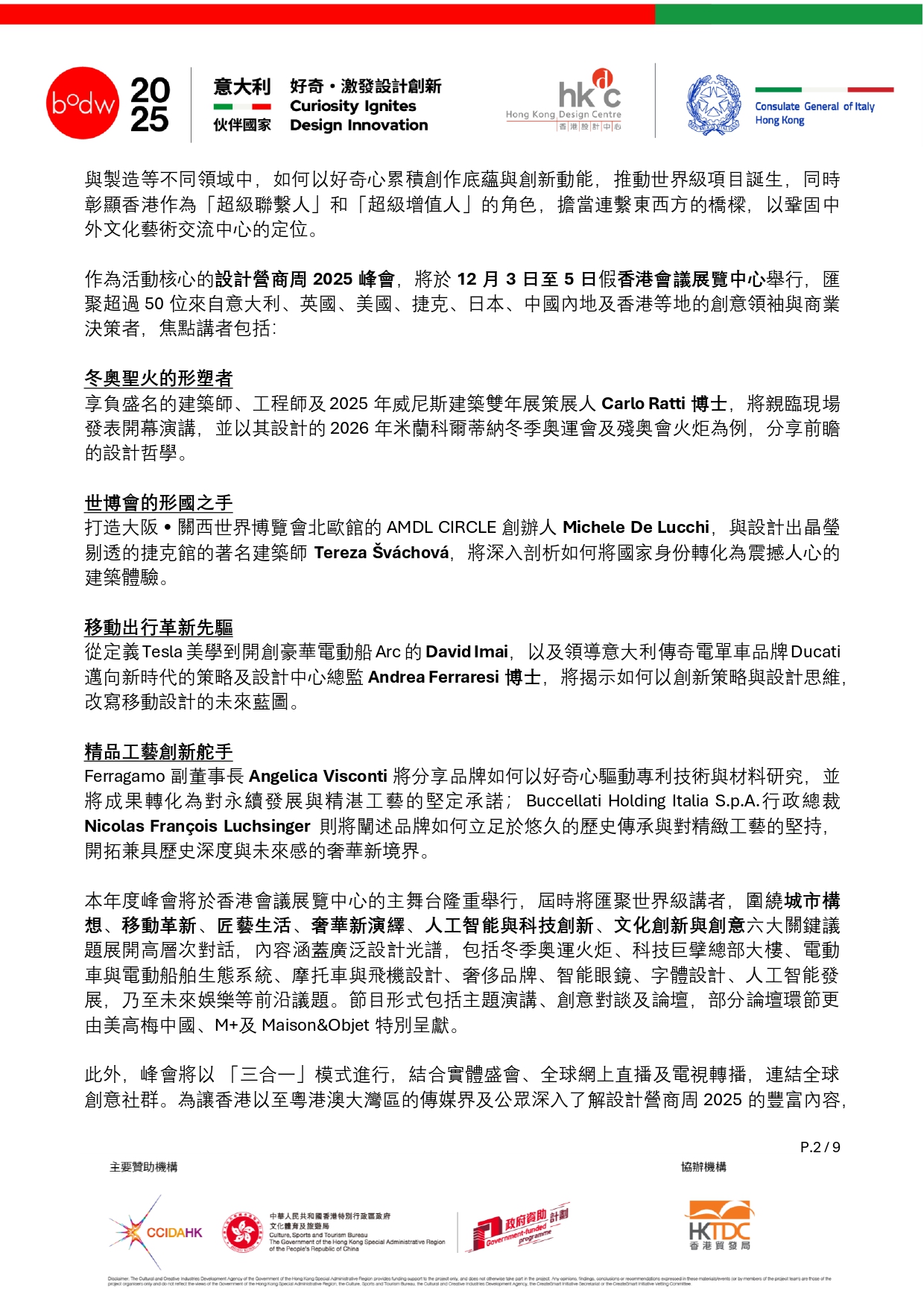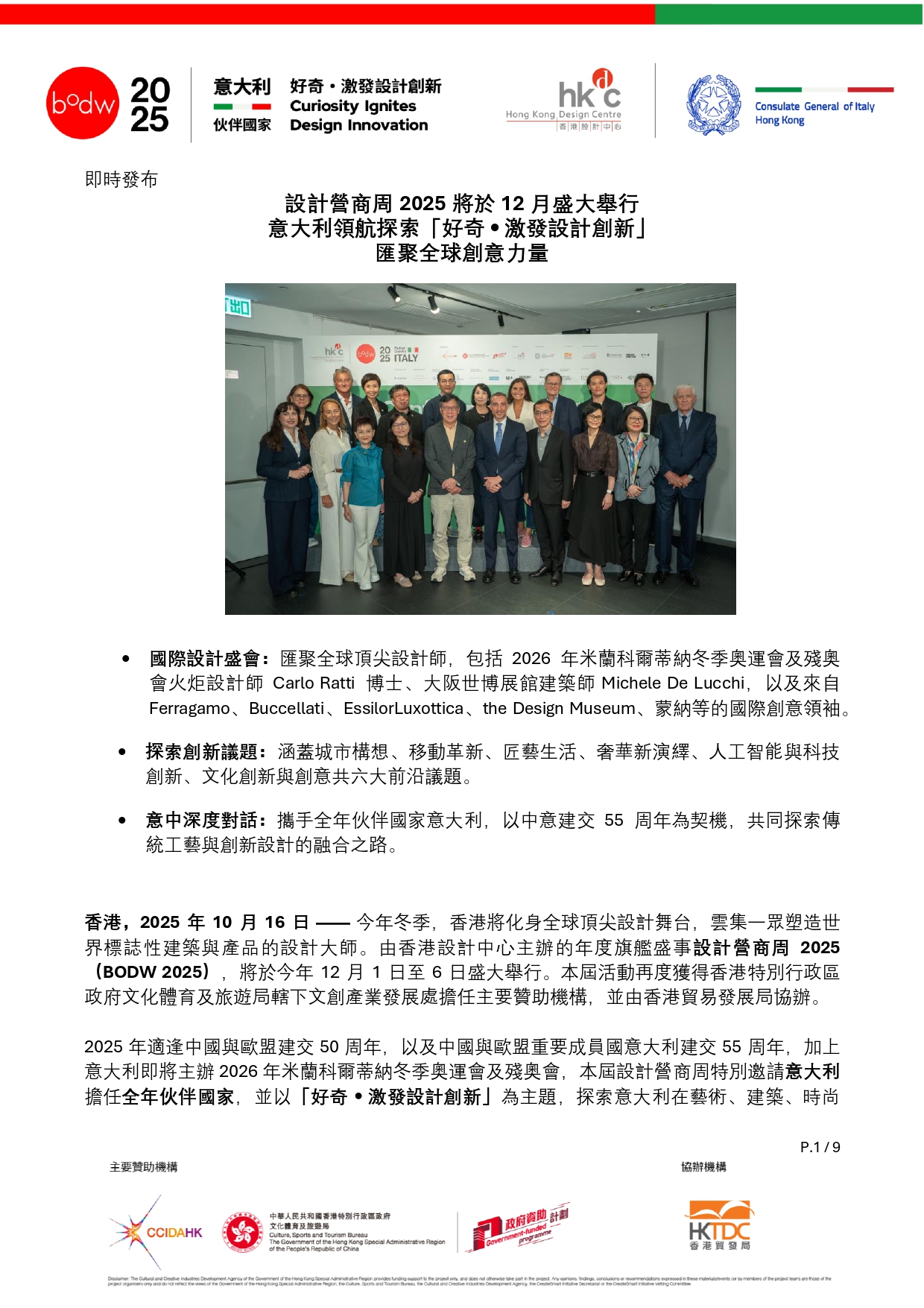 設計營商周2025將於12月盛大舉行 意大利領航探索「好奇 • 激發設計創新」 匯聚全球創意力量