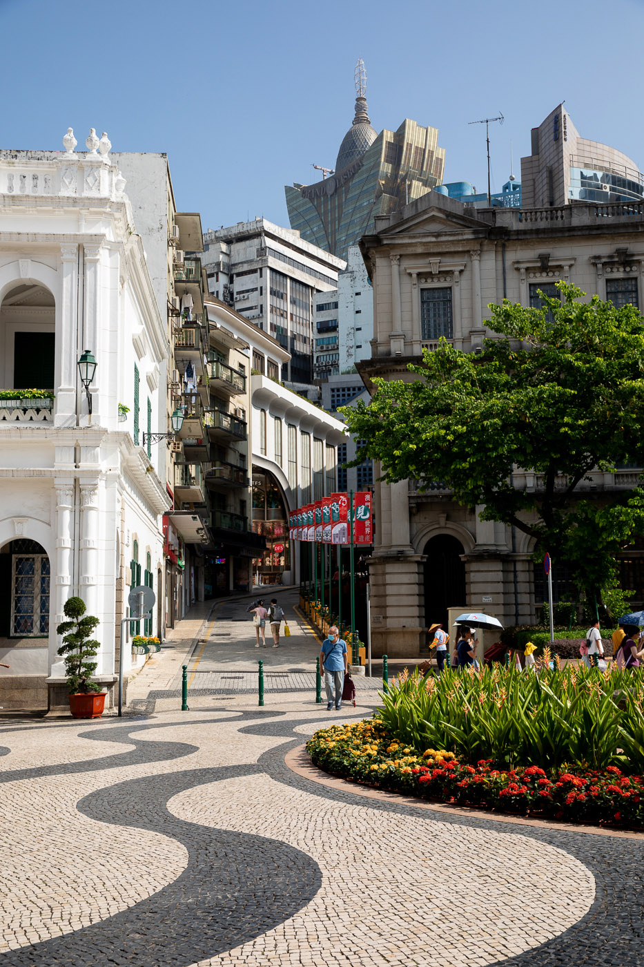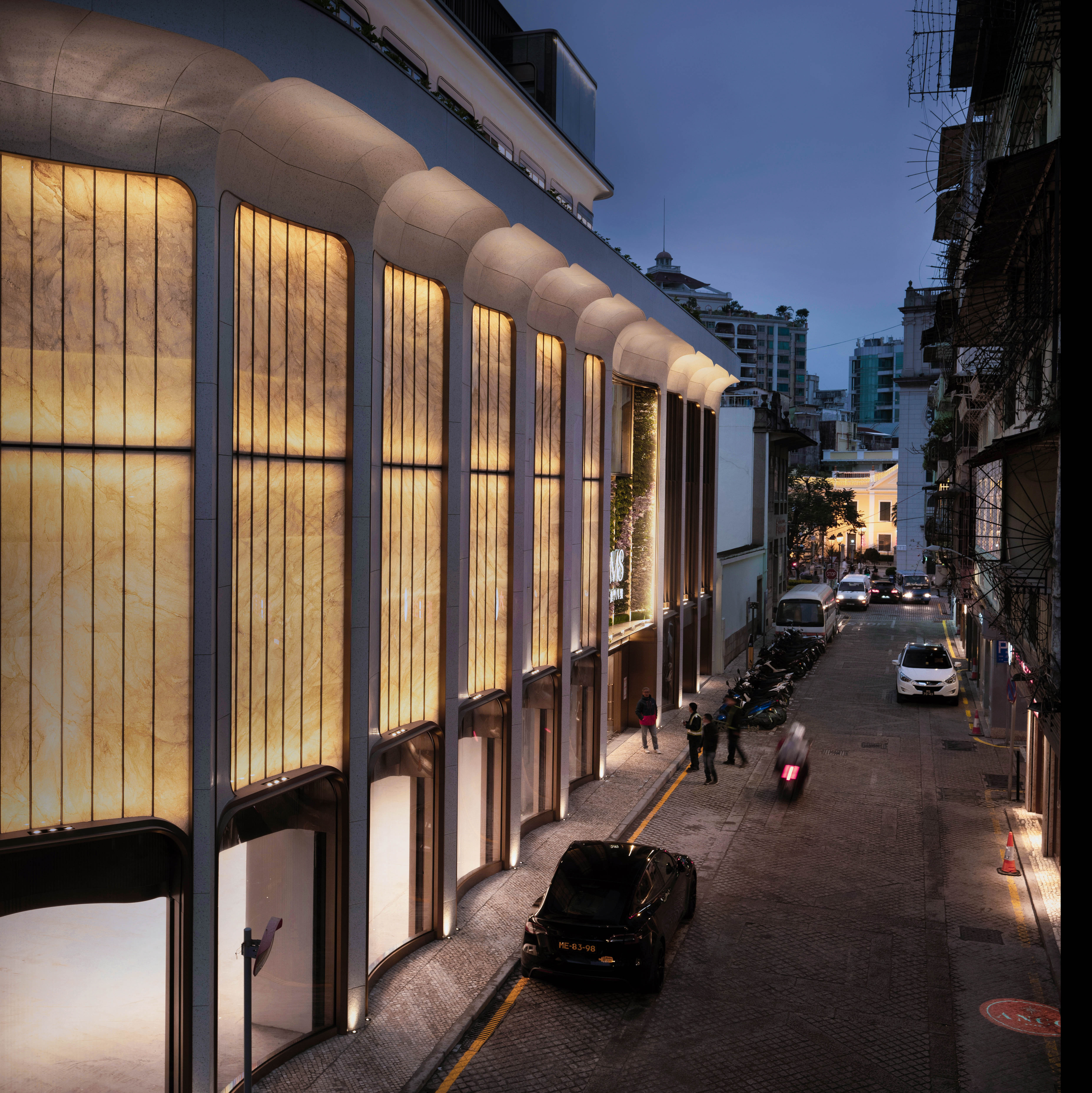 The building’s form responds to its urban context, weaving together historical streets and laneways, while nodding to Portuguese and Chinese architectural traditions. Recycled materials have been incorporated into its designs.