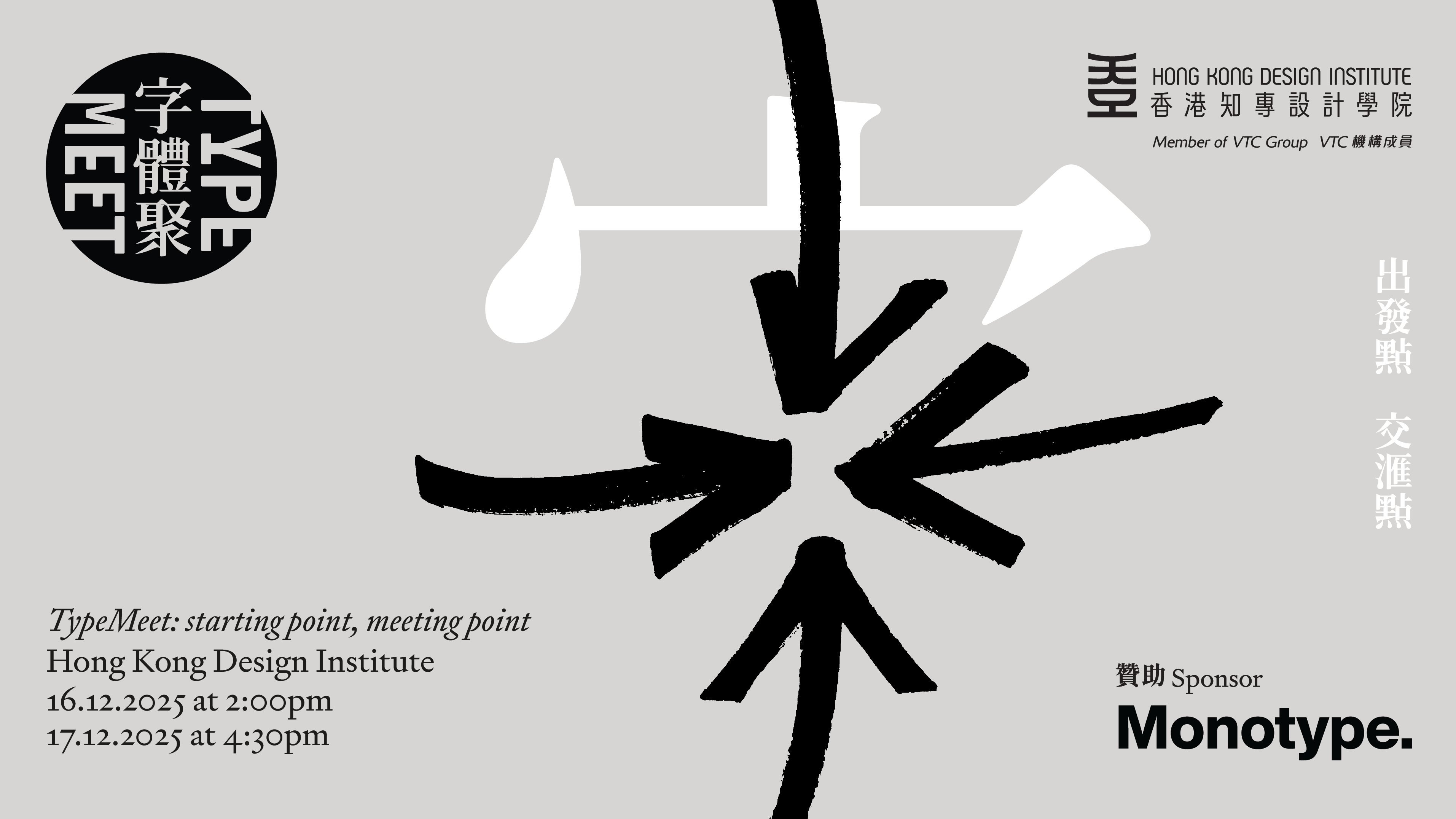 誠邀你出席字體聚 #9 ——出發點/交匯點,一眾字體聚成員及Monotype蒙納公司的金超珑跟大家分享他們的字體設計研究和實踐。